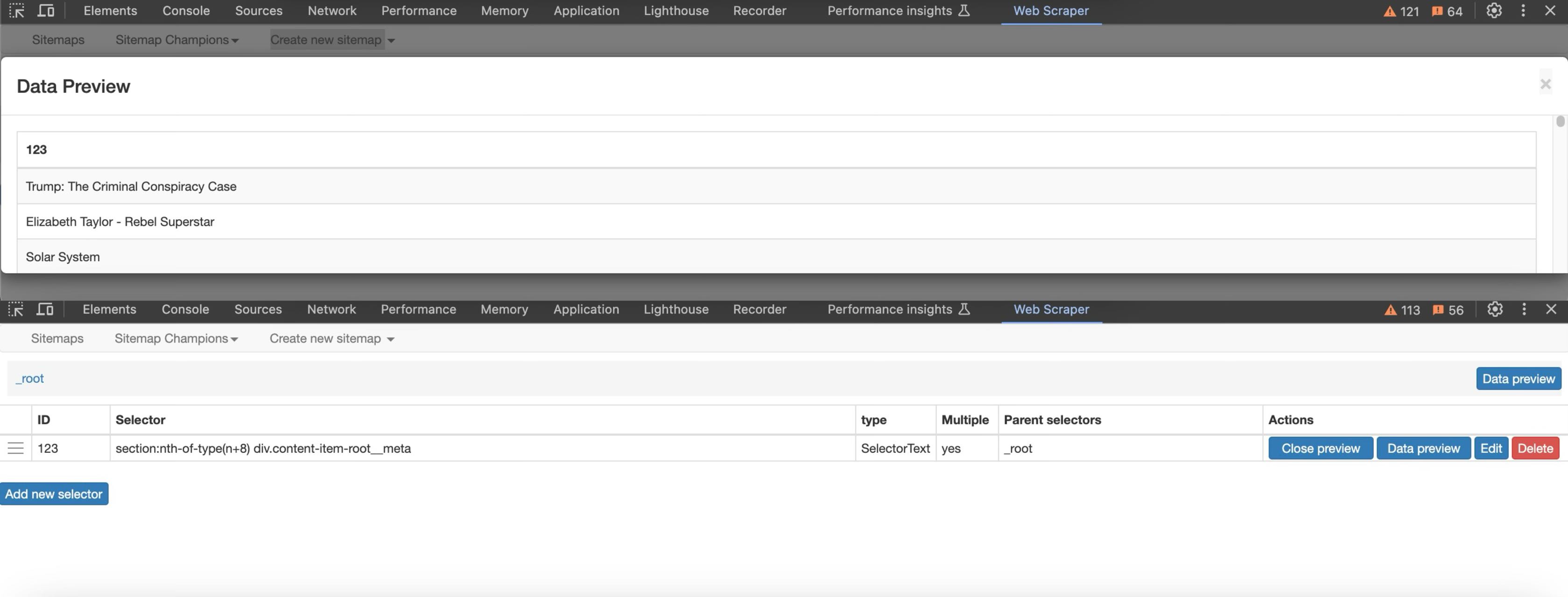 At first, web scraping seemed a bit complicated, but with the help of webscraper.io, I was able to scrape and organize data (even though I didn’t gather much). This experience gave me a clearer understanding of website structures and how to effectively target specific data. Overall, it was a very useful lesson, and I look forward to improving my scraping techniques and applying them to future projects.