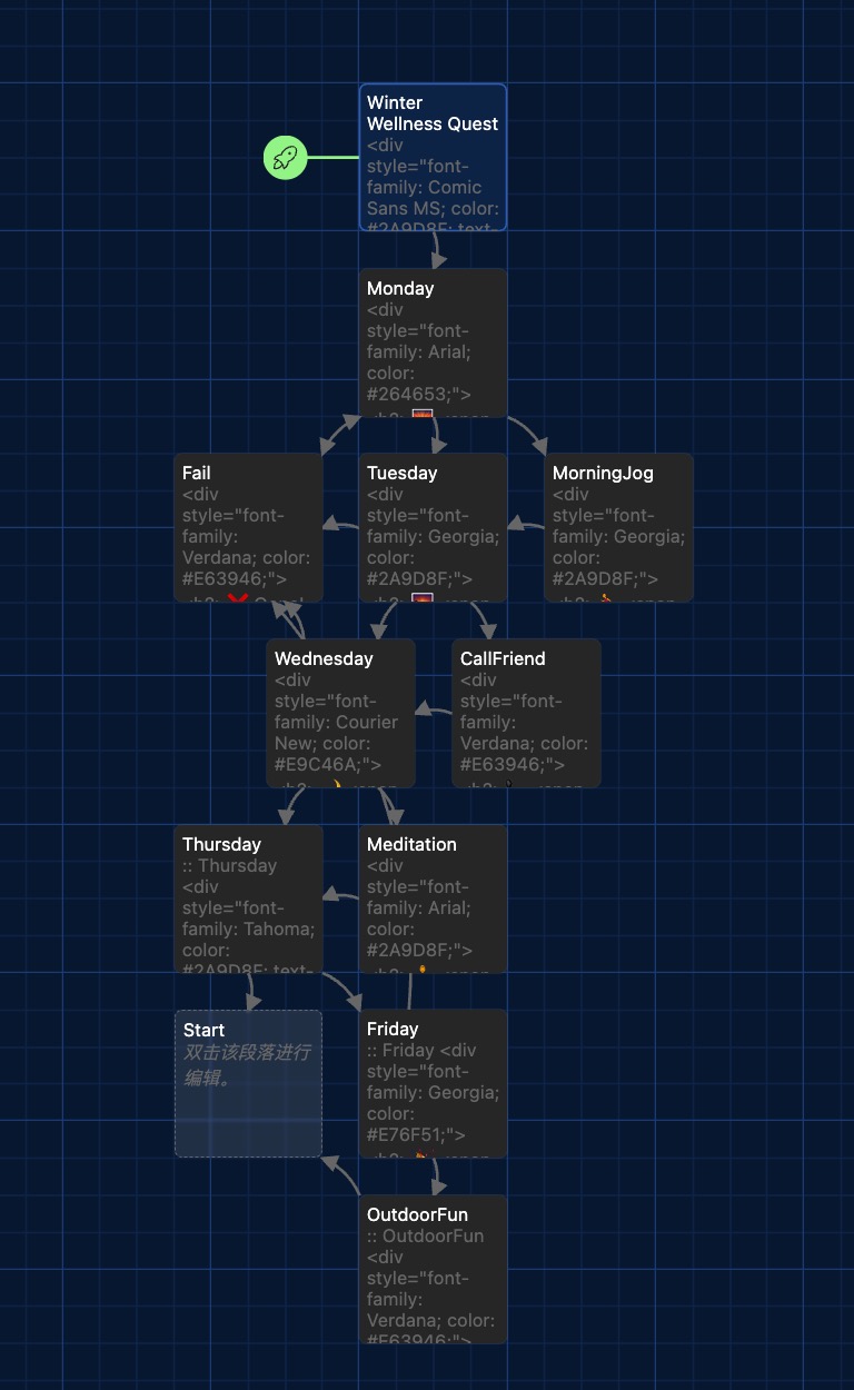 I believe that the novelty of interactive tales is that they can elicit emotional resonance in players through choices. For example, Frogs in Space engages the player through a warm narrative environment, and the story of a frog hunting for stars for an Earth cat might resonate with the player's friendship; whereas Winter Wellness Quest resonates with the player's lived experience through its The 'Winter Wellness Quest' speaks to the player's life experience by telling a true narrative about the chaotic routines of students in the United Kingdom during the winter. Through these quests, I've realized that interactive narratives are more than just a form of entertainment; they're also a strong medium for eliciting thought and emotional resonance in players. In the future, interactive narrative design may have a greater impact on education, cultural expression, and the examination of societal concerns.